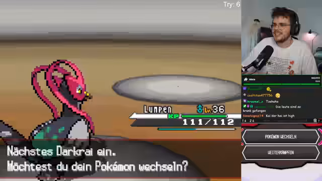 02:00:07Der Streamer trifft auf ein besonders starkes Darkrai in der Herausforderung. Er analysiert dessen mögliche Attacken und wählt ein strategisches Vorgehen mit Toxin-Stall. Nach erfolgreicher Bekämpfung des Darkrai trifft er später auf den Arena-Leiter Süsun, der ein starkes Line-Up mit verschiedenen Attackentypen hat. Der Streamer prüft verschiedene Strategien, um diesen Kampf zu bestehen.