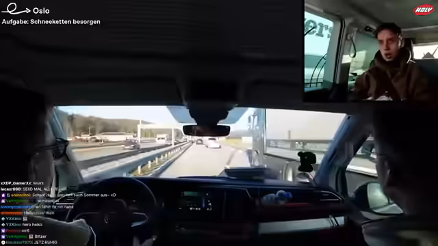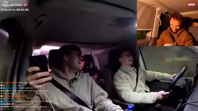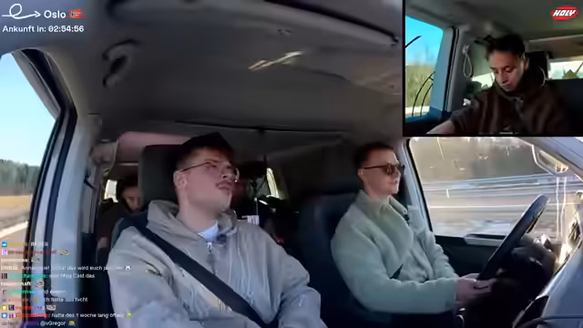 00:20:02Während der Fahrt nach Oslo übernimmt Hugo die technische Betreuung und richtet den Helm ein, um die Fahrt zu dokumentieren. Die Crew sucht nach einem geeigneten Frühstücksort zwischen Göteborg und Oslo und bittet die Zuschauer um Vorschläge. Es wird überlegt, ob ein Burgerladen die richtige Wahl für das Frühstück ist. Während der Fahrt wird über verschiedene Themen diskutiert, darunter auch ein Vorfall mit einer offen gelassenen Gartentür, die potenziell einen Einbruch ermöglicht hätte. Die Crew beobachtet Enten und diskutiert über Männchen und Weibchen. Heiko wird für seine Fahrweise kritisiert, während die Gruppe über das perverseste Wort diskutiert. Es wird festgestellt, dass die Gruppe innerhalb von 24 Stunden drei Länder (Dänemark, Schweden, Norwegen) durchqueren wird. Die Navigation wird auf Oslo ausgerichtet, während gleichzeitig nach einem Frühstücksrestaurant gesucht wird. Es wird über die Anzahl der Tage der Tour und die mitgenommenen Klamotten diskutiert.