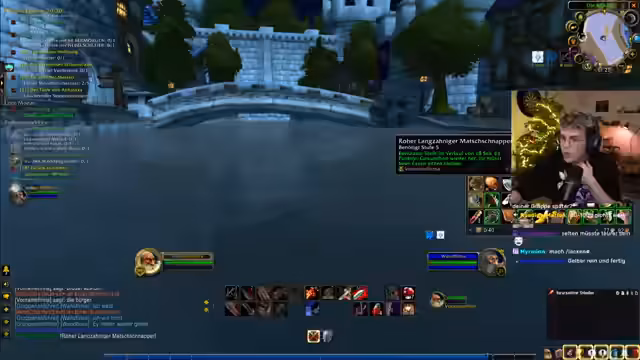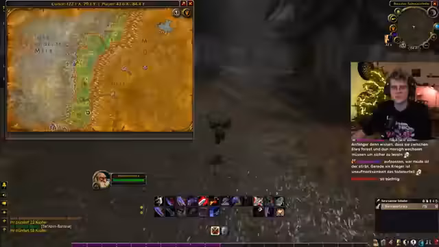 06:25:02Der Streamer erklärt seine Motivation, erstmals als Tank-Krieger zu spielen – bisher hatte er nur DPS-Rollen eingenommen. Er möchte die Verantwortung und die Mechanik des Tankings kennenlernen. Dabei diskutiert er mit dem Chat über Addons: Bagnon wird als problematisch eingestuft, da es immer wieder zum Neuladen zwingt. Er plant, spezielle Addons für eine übersichtliche Darstellung im Stream zu integrieren, darunter verbesserte Anzeigen für Lebenspunkte und Fähigkeiten. Kirill hat ihm einen empfohlenen Skilltree für den Tank-Build geschickt, den er befolgen will, sich aber offen für spätere Anpassungen zeigt.