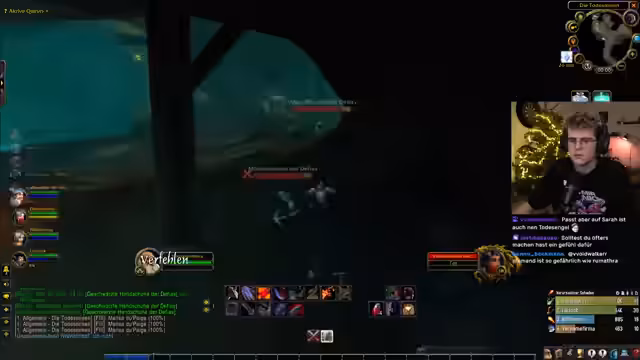 01:38:08Für den Deadmines-Dungeon wird ein DPS-Spieler gesucht. Der Streamer lädt Nihilismus (Vorname Firma) ins Team ein, nachdem dieser sich im Chat gemeldet hat. Das bestehende Team besteht aus dem Streamer (Tank), Sarah (Level 25), und einem weiteren DPS. Diskussionen über die optimale Gruppenzusammensetzung und die Fähigkeiten von Sarah (Single-Target-Damage) entstehen. Der Streamer betont, dass sie einen weiteren Heiler benötigen, ist aber zuversichtlich, dass das Team funktioniert.