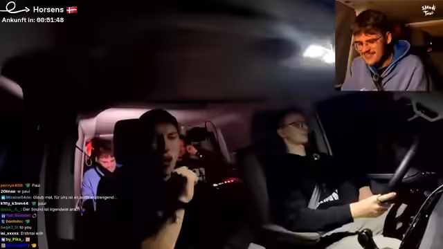 00:09:16Der Stream startet mit der Ankunft am Fährhafen für die Überfahrt nach Norwegen, Tag 8 der Scanditour. Es wird eine vierstündige Fährfahrt erwartet, bei der möglicherweise kein Internet verfügbar sein wird, da die Starlink-Satellitenabdeckung auf dieser Route nicht optimal ist. Trotzdem wird gehofft, dass der Stream auf der Fähre funktionieren wird. Nach der Fährfahrt ist eine Übernachtung in einem Gefängnis geplant, um eine authentische Gefängniserfahrung zu sammeln. Ein Zuschauer hatte das Team an der Unterkunft überrascht, was unerwartet war. Außerdem wird ein Schild der Scanditour verlost, das von einem Zuschauer angefertigt wurde, unter allen Bestellern von Merch wie Socken, T-Shirts und Mützen. Es gibt noch viele Socken im Angebot, daher wird empfohlen, diese zusammen mit einem T-Shirt zu bestellen, um Versandkosten zu sparen. Das finale Design des T-Shirts wird später im Stream gezeigt.
