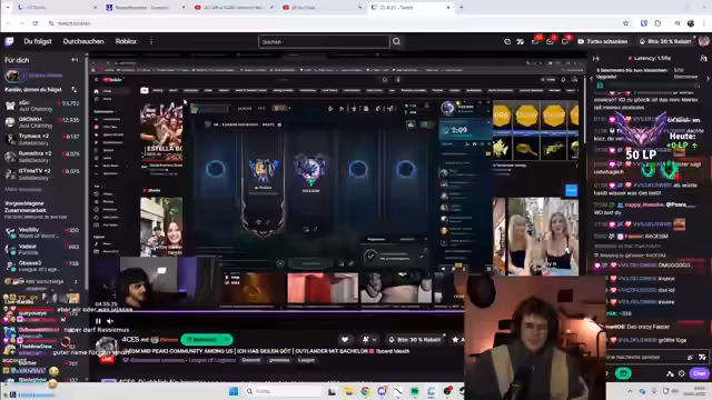 05:32:17Der Streamer unterbricht das Kochthema und beginnt mit League of Legends. Er erwähnt, Roblox als alternative Spieloption, zeigt aber Vorliebe für League. Der Streamer spielt eine Runde, unterbricht jedoch für ein kurzes Among-Us-Spiel und unternimmt kurz einen Versuch, ein Raubtier-Overleben-Spiel in Roblox zu zocken, das aber schnell wieder beendet wird. Die Hauptaktivität bleibt das Zocken von League of Legends.