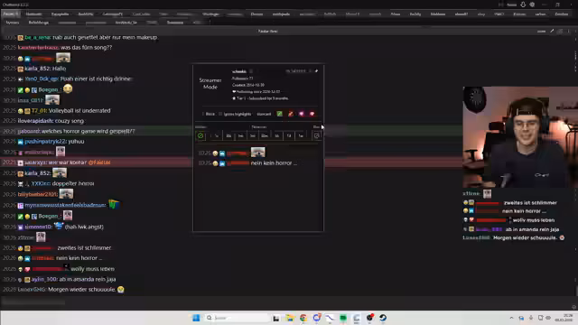 00:05:21Der Stream beginnt mit einer lockeren Begrüßung der Zuschauer. Der Streamer, genannt faister, begrüßt die Community und erwähnt, dass es ein weiterer Abend ohne bestimmten Plan ist. Nach einer kurzen League of Legends-Session ist der Fokus des Abends auf Horrorspiele gerichtet. Man plant, Amanda: The Avenger 2 zu spielen, auch wenn der erste Teil noch nicht installiert ist. Der Streamer teilt persönliche Details mit, wie seinen Schlafrhythmus und seinen Besuch im Fitnessstudio, und interagiert intensiv mit dem Chat, indem er die Namen vieler Zuschauer anspricht.