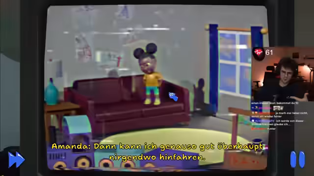 01:58:12Bei der Interaktion mit den Figuren des Tapes wird die komplexe Mechanik des Rätsels deutlich. Eine Figur, die roten Trank erhält, schließt den Mund, was den Streamer veranlasst, deren Aktion zu imitieren. Weitere Versuche, wie das Anschalten des Lichts, führen zu unvorhersehbaren Reaktionen. Die Kombination aus Aktionen, wie das Abdecken der Ohren und gleichzeitigem Anmachen des Lichts, erweist sich als der richtige Weg. Nach erfolgreichem Lösen des Rätsels wird der Schlüssel zur Fortbewegung in die nächste Stadt, Mexico City, freigeschaltet. Der Streamer muss nun die Münzen für das Reisefonds-System sammeln, indem er die Kassette erneut ansieht und während der Interaktion mit der Spielfigur spezialisierte Aktionen ausführt.
