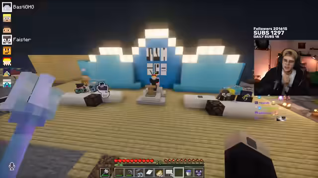 00:49:57Der Streamer beginnt mit den Vorbereitungen für den Bau von Minas Tirith in Minecraft. Er füllt eine Shulker-Box mit den benötigten Blöcken wie Diorit, Palewood, Quarz und Wax-Copper. Währenddessen wird er in eine Diskussion über ein Problem in Bastis Base verwickelt, wo Stegi in Bedrock gefallen ist und nicht mehr herauskommt, da ihm eine 'Stasis Chamber' fehlt. Ein Ghast soll als 'Pilot' eingesetzt werden, um Stegi zu retten. Der Streamer drückt seinen Wunsch aus, sich auf den Bau von Minas Tirith zu konzentrieren und entspannte Musik zu hören. Er bespricht mit Wieland die Aufgabenverteilung für den Bau einer Ebene und schlägt vor, die Ebene in linke und rechte Seiten aufzuteilen, um gleichzeitig arbeiten zu können. Er erwähnt, dass er sich mental in seiner 'Prime' fühlt und sein Leben genießt, indem er sich auf das Chillen und das Bauen konzentriert, anstatt sich von Zahlen und Tryhard-Mentalität leiten zu lassen, wie es ihm Niek geraten hatte. Er betont die Wichtigkeit, einen gesunden Rhythmus beizubehalten und sich nicht von äußeren Einflüssen ablenken zu lassen.