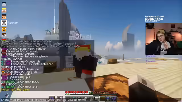 05:58:08Der Streamer interagiert mit NickBit, der in einem Gefängnis in Minecraft festsitzt und um Hilfe bittet. NickBit erklärt, dass er von Paul Frege, Fabo, Maxson und Niki Stemmler eingesperrt wurde und unter Abbaulähmung leidet. Der Streamer eilt zur Hilfe und befreit NickBit, wobei er sich über dessen mangelnden Dank lustig macht. Anschließend diskutiert er mit NickBit über seine Lieblings-Zelda-Spiele. Während der Streamer Breath of the Wild wegen seiner Sandbox-Optionen bevorzugt, mag NickBit eher die traditionelleren Zelda-Spiele wie Ocarina of Time. Sie sprechen auch über Tears of the Kingdom und Echoes of Wisdom, wobei die Meinungen über die Ähnlichkeit zu Breath of the Wild und die Qualität der Spiele auseinandergehen.