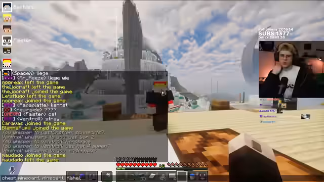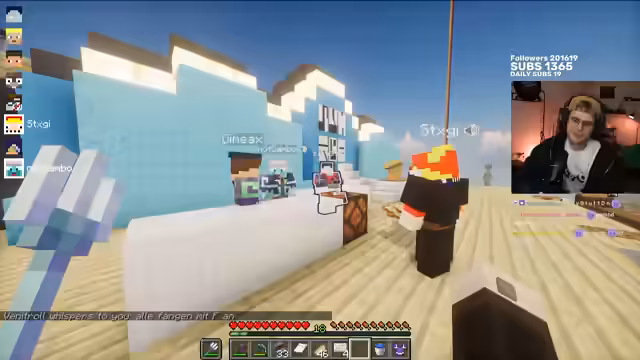 05:00:13Nach dem Quiz reflektieren die Teilnehmer über die Schwierigkeit und den Spaß der Fragen. Es wird betont, dass das Quiz nicht generisch war und einige „ekelhafte, weirde Fragen“ enthielt. Die Dynamik des Spiels, insbesondere die Tatsache, dass ein Team gegen mehrere Spieler antrat, wird angesprochen. Anschließend wechselt das Gespräch zu persönlichen Themen. Der Streamer erzählt von seinem abgebrochenen Studium der Sprache und Kommunikation, das er zugunsten des Streamings beendete. Er beschreibt seine Enttäuschung über den Studieninhalt, der sich mehr auf die Verarbeitung von Stimmen im Kopf konzentrierte als auf das Erlernen verschiedener Sprachen. Die Diskussion kehrt zum Minecraft-Projekt Minas Tirith zurück, wo der Streamer frustriert über die Baufortschritte ist, da ein Teil seiner Terraforming-Arbeit für eine spontane Treppenkonstruktion abgebaut wurde. Er sucht nach Kompromissen für die Integration der Treppe in den Berg und bespricht die Baupläne mit anderen Spielern.