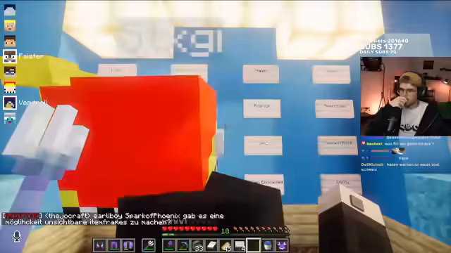04:41:37Die Quiz-Runde geht weiter mit verschiedenen Kategorien. Zunächst werden „Easter Egg Name-Tags“ wie Toast, Jab, Dinnerbone und Johnny besprochen, die spezielle Interaktionen mit Mobs auslösen. Anschließend geht es um unzerstörbare Blöcke in Minecraft, die man im Survival-Modus nicht im Inventar haben kann, wie Nether Portal Blocks, End Portal Frames, Bedrock und Command Blocks. Die Diskussion dreht sich darum, ob diese Blöcke nur über Commands erhältlich sind oder auch im Creative Inventory. Eine weitere Kategorie befasst sich mit Teleportationsmöglichkeiten wie Chorus-Früchten, Ender-Perlen und Respawn-Ankern. Danach werden goldene Äpfel und deren alte Namen wie God, Golden, Notch und Enchanted thematisiert. Die letzte Kategorie, „Konsonanten-Chaos“, fordert die Teilnehmer auf, Wörter zu erraten, bei denen die Vokale fehlen. Die Konsonanten sind dabei in der richtigen Reihenfolge, und die Wörter können sowohl Deutsch als auch Englisch sein. Die Themen für diese Runde werden jeweils vom Moderator genannt. Die Teilnehmer buzzern, um ihre Antworten zu geben.