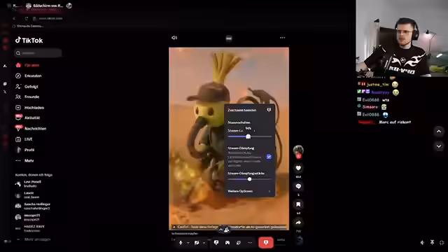 00:13:51Der Streamer spielt mit KI-Henno einem KI-System, das seine Karriere zusammenfassen soll. KI-Henno macht dabei sarkastische Kommentare und unterliegt im verbalen Duell. Der Streamer zeigt verschiedene TikToks, darunter unterhaltsame und skurrile Inhalte, und reagiert auf aktuelle Trends und Memes im Internet.