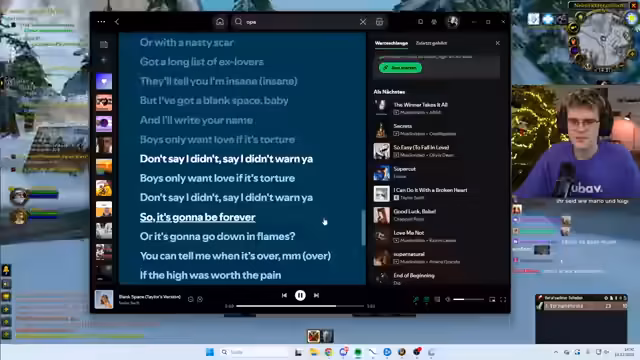 00:03:52faister startet den Stream und kündigt an, den gesamten Tag World of Warcraft zu spielen, speziell das Leveln eines Kriegers. Er erwähnt mögliche spontane Abendaktivitäten mit Tamina, betont aber den Fokus auf den WoW-Grind. Dabei spricht er über persönliche Punkte wie das Vergessen eines zweiten Songs, den Wassermangel am Platz und die Vorfreude auf ein intensives Zocken mit der Community. Er plant zudem, die Sättigung im Spiel zu erhöhen, um nicht zu 'grau' zu wirken, und erwähnt kurzzeitig einen Donations-Link für streunende Tiere auf Madeira.