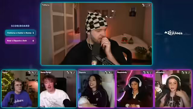 05:07:04Der Streamer und die Teilnehmer bereiten eine Runde des Spiels Activity vor. Es wird erklärt, dass es drei gegen drei spielt, mit Teamwechsel nach der ersten Runde. Die Regeln werden dargelegt: 2 Punkte für richtige Begriffe, -1 für Skip, 0 bei Zeitablauf. Die Teilnehmer werden in Teams eingeteilt (Team 1: Streamer, Rose, Sam; Team 2: Feister, Ronny, Lia) und es wird auf ein gemeinsames Gaming-Event hingewiesen. Das Zeitlimit pro Runde beträgt 80 Sekunden, und die Interaktion erfolgt über eine spezielle Player-Seite im Discord.