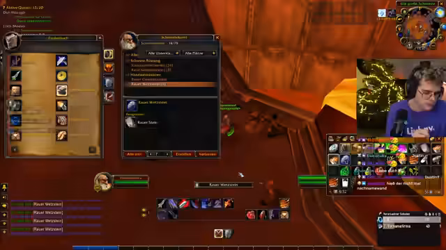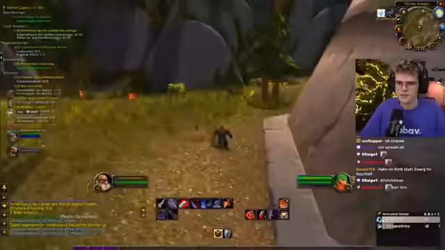 00:21:48Nach dem Login in Loch Modan diskutiert faister mit der Gruppe Queststrategien, darunter Troll-Jagden und das Sammeln von Eiern für ein Haustier. Er zeigt sich verwirrt über technische Aspekte wie Charakterwechsel (von Zwerg zu Gnome), während er Tipps für Effizienz gibt, etwa beim Schürfen von Erzen für spätere Handwerksberufe. Parallelen zu alten RPG-Erlebnissen werden gezogen, und faister betont den Spaß am gemeinsamen Fortschritt trotz gelegentlicher Überforderung durch zu viele Gegner oder unübersichtliche Questlogik.