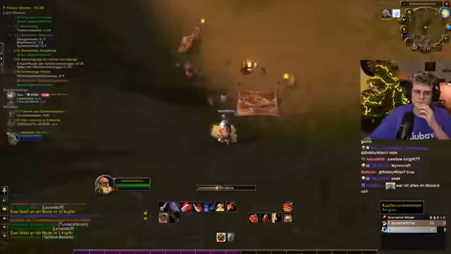 00:15:54faister berichtet von einer Kooperation mit dem Spieler 'Wandfirma', der aktuell Urlaub hat und daher den ganzen Tag zum Leveln verfügbar ist. Er drückt seine Begeisterung aus, gemeinsam mit anderen im Discord zu questen und vergleicht das mit nostalgischen TeamSpeak-Zeiten, in denen man stundenlang zusammen zockte. Die Gruppe plant, Gebiete wie Loch Modan zu erkunden, wobei faister auf die Herausforderungen hinweist, wenn man allein unterwegs ist, und die Vorteile eines festen Teams hervorhebt.