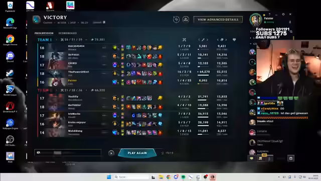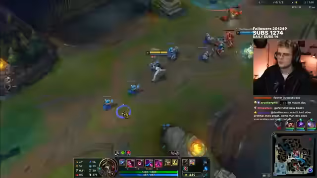 08:50:52Der Streamer kaufte einen Blue Buff und plante, die Sideline zu pushen, um dann mit der nächsten Wave in der Mitte anzugreifen. Die Teammitglieder sollten sich auf die Top-Lane konzentrieren und 'Galio' sollte die Sideline pushen, um Druck aufzubauen. Das Team versuchte, einen Kampf in der Mitte zu erzwingen, um das Spiel zu entscheiden. Trotz aller Bemühungen und einem 'guten Versuch' endete das Spiel mit einer Niederlage für das Team des Streamers. Das Turnier wurde von 'Team Studenten' gewonnen, während das Team des Streamers den zweiten Platz belegte. Die Enttäuschung über die Niederlage war spürbar, insbesondere da das zweite Spiel des Best-of-Five-Finales als entscheidend angesehen wurde und man sich dort eine bessere Chance ausgerechnet hatte. Trotzdem zeigte sich der Streamer stolz auf die Leistung seines Teams, da niemand erwartet hatte, dass sie überhaupt ein Spiel gewinnen würden. Der zweite Platz brachte zwar keinen Pokal, aber die Erkenntnis, dass das Team das Potenzial zum Sieg hatte, war eine wichtige Erfahrung.