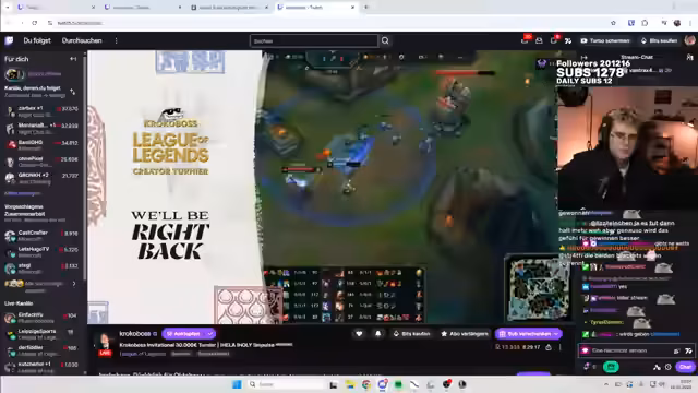00:05:44Der Streamer plant, heute 20.000 Euro im League of Legends Turnier von Kroko zu gewinnen. Zuvor wird noch eine Runde Craft Attack gespielt. Das Turnier ist eine Fortsetzung der gestrigen Gruppenphase, in der das Team vier Siege und zwei Niederlagen erzielte und sich somit für das Winner Bracket qualifizierte. Heute steht ein Best-of-Three an. Zudem wird in den Geburtstag des Streamers reingefeiert, und es besteht die Hoffnung, dass ein Pokal gewonnen wird. Für morgen ist ein Besuch des Big Time Rush Konzerts geplant, was möglicherweise einen frühen Stream beeinflussen könnte. Es wird über die Möglichkeit gesprochen, dass ein Ticket für das Konzert noch frei sein könnte. Die Vorfreude auf das Turnier und die Feierlichkeiten ist groß, und der Streamer ist entschlossen, den Sieg zu erringen, um den Pokal zu gewinnen.