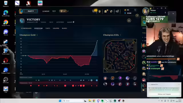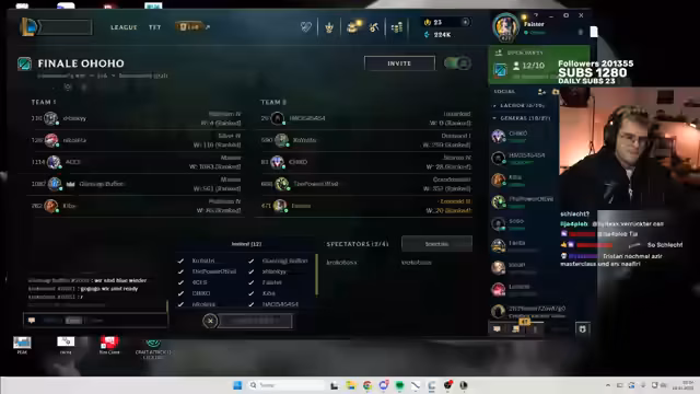 01:29:51Die Spieler reflektieren über die erste Spielrunde und äußern ihre Unsicherheit bezüglich des Spielverlaufs, insbesondere wenn das Team in Rückstand gerät. Es wird festgestellt, dass ein Rückstand von 10.000 Goldpunkten schwer aufzuholen ist, und die Notwendigkeit betont, nicht zu stark ins Hintertreffen zu geraten. Ein Spieler kündigt an, seine "Peak League of Legends Performance" abrufen zu wollen. Die Teamdynamik wird thematisiert, wobei ein Spieler die Bedeutung von Zusammenhalt und gegenseitigem Respekt hervorhebt, insbesondere im Kontext des Turniers. Es wird humorvoll erwähnt, dass Beleidigungen nur nach dem Turnier erlaubt seien. Die Spieler sprechen über die unterschiedliche Art der Kommunikation innerhalb ihrer Teams, wobei einige Teammitglieder einen raueren Umgangston pflegen. Ein Spieler wird als "kleiner Bruder" bezeichnet, dem man zum Geburtstag den Pokal schenken möchte, was die Motivation des Teams zusätzlich anfeuert. Die Vorfreude auf das Finale und die Manifestation des Sieges sind spürbar, und die Spieler stellen sich bereits vor, wo sie den Pokal platzieren würden. Die Stimmung ist kämpferisch, und es wird betont, dass es sich um eine "Schlacht" handelt, in der keine Gnade gezeigt wird.