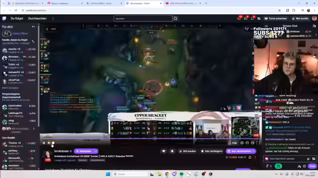 08:52:51Nach der Niederlage im Finale des 30.000€ Kroko Turniers zeigte sich der Streamer enttäuscht, aber auch stolz auf die Leistung seines Teams. Er betonte, dass niemand erwartet hatte, dass sie überhaupt ein Spiel gewinnen würden, und dass der zweite Platz eine beachtliche Leistung sei. Besonders hervorgehoben wurde die Leistung von 'Henki', der sich im Turnier übertroffen hatte und trotz seines Silber-Rangs wie ein Master-Spieler agierte. Der Streamer entschuldigte sich bei 'Hachi' für die fehlende Unterstützung und lobte die gesamte Teamleistung, insbesondere die von 'Nicoletta' im Jungle gegen einen Challenger-Gegner. Er bedankte sich bei allen Teilnehmern, die sich die Zeit genommen hatten, und hob die Bedeutung des Events hervor, das er als einzigartig in seinem Leben beschrieb. Die Organisation des Turniers durch 'Droko' wurde ebenfalls gelobt, da es verschiedene Gaming-Bubbles zusammengebracht hatte. Der Streamer reflektierte, dass das Team ihn überrascht und getragen hatte, da sie auf dem Papier nicht als Favoriten galten.