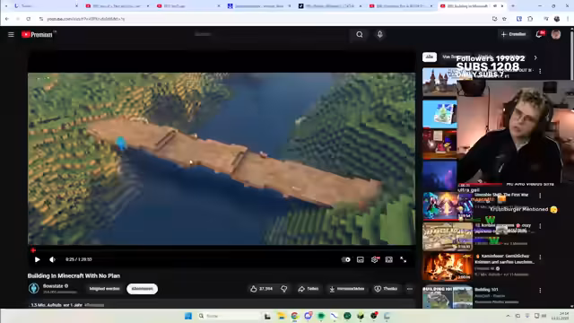 03:10:36Der Streamer überlegt, wieder einen festen Streamplan einzuführen, mit fünf Streams pro Woche. Er denkt darüber nach, unter der Woche um 15 Uhr und am Wochenende um 12 oder 13 Uhr live zu gehen, ähnlich wie früher. Er erkennt an, dass Streampläne sehr nützlich sind. Parallel dazu entwickelt er neue Bauideen für Minecraft, wie eine kleine Mine, die als Werkstatt für Spitzhacken und ähnliches dienen könnte. Er erwähnt, dass er heute Abend noch ein „Diabank-Ding“ patchen möchte. Die fortlaufende Arbeit am Terraforming und die ständigen neuen Gedankeneinflüsse zeigen seine Kreativität und sein Engagement für das Projekt. Die Interaktion mit anderen Spielern und die gemeinsamen Bauvorhaben sind ein zentraler Bestandteil des Streams.
