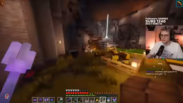 02:51:28Der Streamer und ein anderer Spieler unterhalten sich über die Platzierung eines Beacons. Es wird geklärt, dass ein Beacon, der sich zuvor unter einer Arena befand, verschoben wurde, da an dieser Stelle eine Bambusfarm gebaut werden soll. Die Höhe des Beacons wird angepasst, um den blauen Strahl für die Arena zu optimieren und gleichzeitig den Haste-Effekt zu nutzen, der für Bauprojekte vorteilhaft ist. Der Wunsch nach zwei Beacons wird geäußert, was die Bedeutung dieser Struktur für Effizienz im Spiel unterstreicht. Die Planung einer Bambusfarm ist ein weiteres großes Projekt, das die Materialbeschaffung für zukünftige Bauvorhaben sicherstellen soll. Die Unterstützung durch andere Spieler, die Diamanten für den Bau anbieten, zeigt die Kooperation innerhalb der Community.