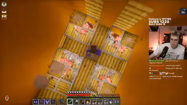 04:40:07Heiko konfrontiert Kevin, Papa Platte, mit einem Vorfall, bei dem Kevin zuvor zehn Stacks Quarz aus Heikos Kiste gestohlen hatte. Jetzt, da Heiko selbst viel Quarz benötigt, hat er sich ebenfalls zehn Stacks Quarzblöcke aus Kevins Kiste genommen und ein Bild mit einem Emoji hinterlassen, das 'is for me' signalisiert. Kevin, der den Diebstahl zunächst nicht bemerkt hatte, wird nun mit der Situation konfrontiert. Es entsteht eine Diskussion darüber, ob Heiko das Quarz behalten darf, da er es für Smooth Quarz schmelzen müsste und es somit für Kevin unbrauchbar machen würde. Die Freunde einigen sich darauf, dass Heiko die zehn Stacks Quarz behalten darf, da Kevin es nicht sofort benötigt. Es wird überlegt, wie man zukünftig Quarz farmen kann, wobei Dima als neuer Nachtschicht-Mitarbeiter ins Spiel gebracht wird, der sich beweisen muss. Die Spieler unterstützen Heiko bei der Konfrontation und bei der Suche nach Lösungen.