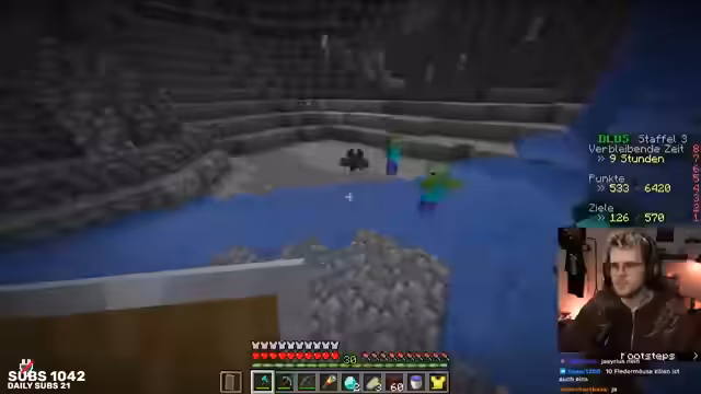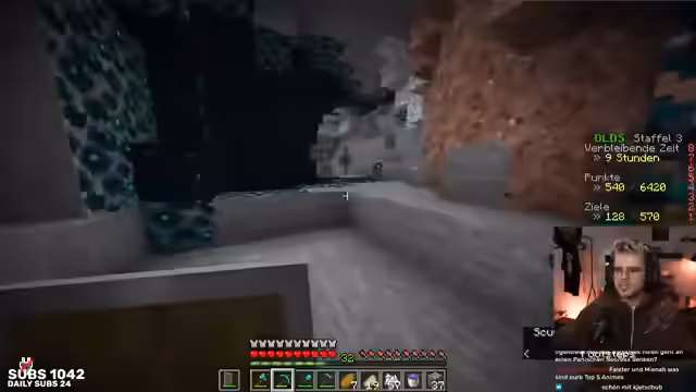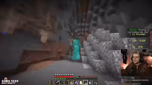 03:24:11Das Team beschließt, eine Höhle zu erkunden, um Diamanten zu farmen. Der Streamer stellt fest, dass die aktuelle Höhle suboptimal ist und sich nicht als besonders ergiebig erwiesen hat. Er erkundigt sich im Chat nach baren Alternativen wie unterirdischen Wasserhöhlen. Das Ziel ist es, beide Spieler mit einer vollständigen Diamantausrüstung auszustatten, um unbesiegbarer zu werden. Die Suche nach Diamanten gestaltet sich jedoch mühsam und es werden mehrere strategische Entscheidungen getroffen, um die Höhle effizienter zu nutzen und Risiken wie den Sturz auf Dripstone-Blöcke zu vermeiden.