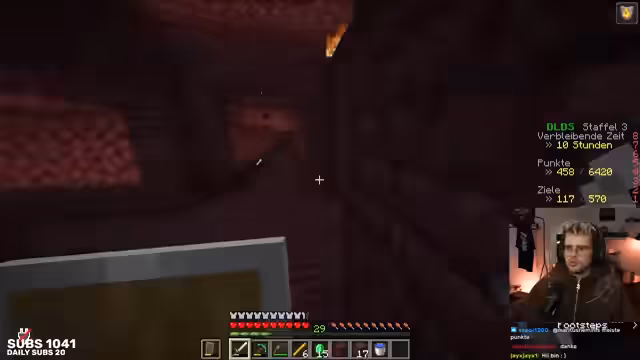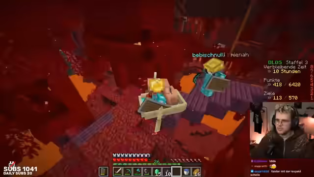 05:53:38Das Hauptziel während des Streams ist das DLDS-Event in Minecraft, bei dem bestimmte Aufgaben zur Punktegewinnung erfüllt werden müssen. Die Streamer sammeln Enderperlen, um ein Portal zu bauen, und planen, durch verschiedene Höhlen zu reisen, um Ancient Cities zu finden. Dabei wird über taktische Vorgehensweise diskutiert, insbesondere wie man sicher zur Netherdecke gelangen kann.