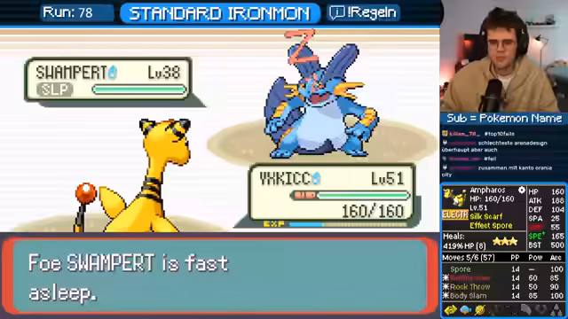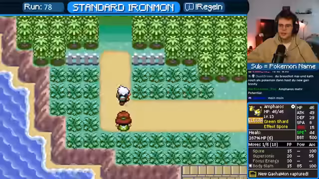 01:59:51Der Streamer analysiert sein Pokémon-Team, insbesondere Ampharos, welches durch Calm Mind und hohe ATK-Stärke überzeugt. Die Attacke Stachelspore wird als extrem wertvoll eingestuft, da sie garantiert Schlaf verursacht und in vielen Kämpfen einen strategischen Vorteil bietet. Auch die Statistiken wie der hohe Speed von Ampharos auf Level 10 werden positiv bewertet. Der Fokus liegt darauf, ein starkes und vielseitiges Team für den Ironmon-Run aufzubauen.