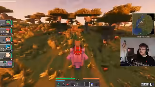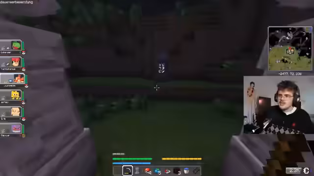 01:35:49Nach den Aktivitäten im RL wechselt der Streamer zum Gaming-Inhalt und startet einen Stream zur Pokémon-Mod Cobblemon in Minecraft. Das Team ist direkt vor dem ersten Arenaleiter. Man sieht die Pokémon links und die Minimap rechts, die Ziele sind klar definiert. Man will stark werden und die Arena besiegen.