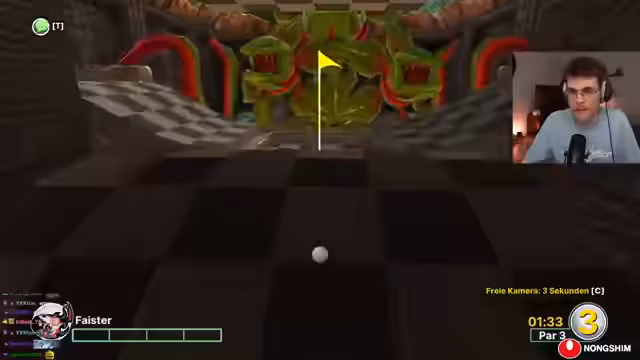 04:22:31Während der Ragen entsteht bei den Spielern ein zunehmender Performancedruck. Besonders Gambo wird mehrfach für seine Schwierigkeiten beim Zielen und die vielen benötigten Schläge kritisiert, was zu viel humorvollem Spott führt. Der Streamer selbst gerät in eine Frustrationsphase, nachdem er unfreiwillig aus der Karte herausfällt und mehrere Chancen auf ein Hole-in-One verpasst. Map-spezifische Schwierigkeiten, unfaire Hindernisse und technische Eigenheiten des Spiels, wie ein hartnäckiges Vollbildfenster, führen zu vermehrten Ausrufen der Verärgerung und gesteigerten Ansprüchen an das eigene Gameplay.