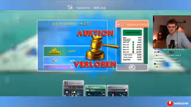 05:34:25Das Spiel beginnt mit der Überlegung, ob man eher auf Ragebait oder entspanntes Spielen setzt. Es finden die ersten Auktionen statt, in denen Gambo aus einer Auktion aussteigt, um nicht zu viel zu zahlen. Feister erwirbt daraufhin den Westbahnhof und beschwert sich über seine glücklose Startphase, die sehr wenig Straßen gebracht hat. Die anfängliche Dynamik ist von taktischen Entscheidungen und Unmut über das spielerische Los geprägt.