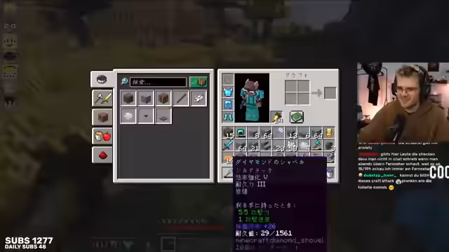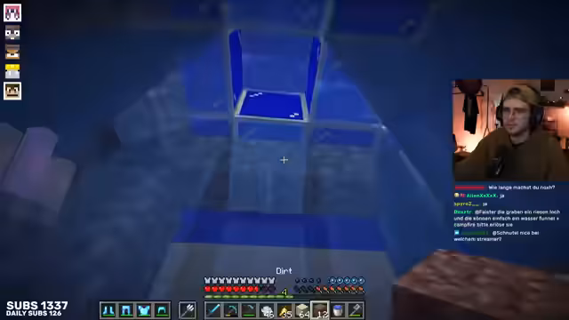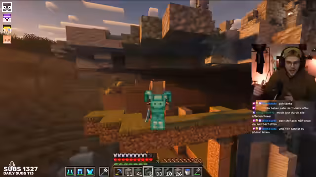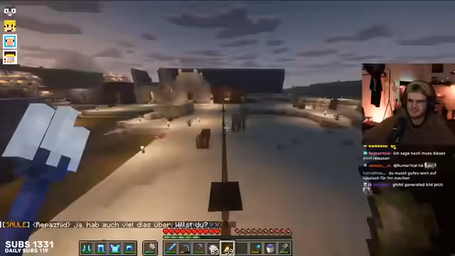 18:03:12Der Streamer beschäftigt sich intensiv mit dem Trockenlegen von Chunks in Minecraft, um eine effiziente Squid-Farm zu bauen. Dabei wird die Größe der zu trocknenden Fläche diskutiert und es besteht Einigkeit, dass man bis Höhe 29 arbeiten muss. Es werden verschiedene Strategien für den Umgang mit Diamanten behandelt. Eine neue Diamant-Spitzhacke kostet 17 Level, während das Reparieren mit einzelnen Diamanten kostengünstiger ist. Der Streamer stellt jedoch fest, dass die Gruppe fast keine Diamanten mehr hat, was die Planung erschwert.