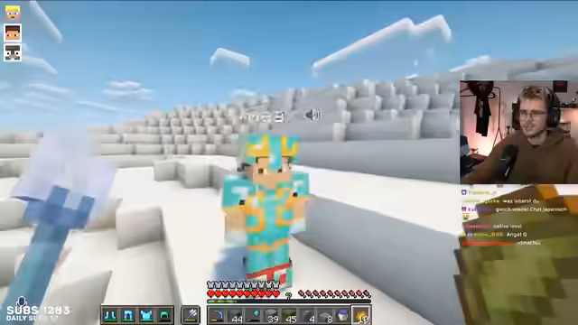 00:43:36Die Community wird aktiv in unterhaltsame Gespräche einbezogen. Der Streamer erklärt den Begriff 'Bibi-Schnulli' als ein Gefühl von Glück und Geborgenheit. Im Anschluss geht es zu einem Trend von TikTok, bei dem man User 'in ein bestimmtes Jahr lassen' soll. Die Community diskutiert humorvoll, wen sie aus dem Craft-Attack-Call in '2025' 'lassen' würden, wobei Namen wie Wieland und Rehwi fallen. Zuletzt plant der Streamer, eine Mine im Stil von Elden Ring zu bauen.
