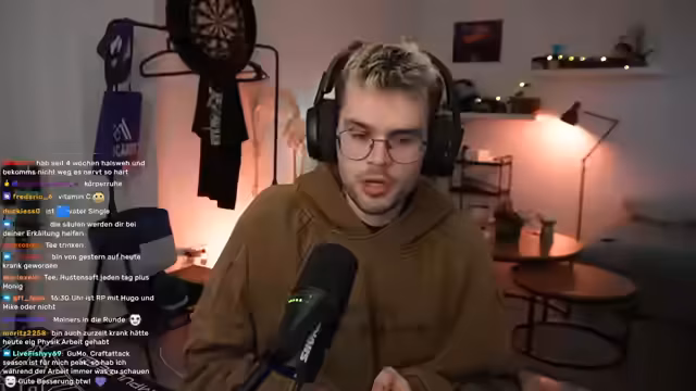 Ein Streamer berichtet über seine gesundheitliche Situation. Er ist seit drei Wochen krank, was seinen Schlaf stark beeinträchtigt. Gleichzeitig dominierte ein finanzieller Notfall den Stream. Es mussten spontan 1.300 Euro an einen Freund zurückgezahlt werden, nachdem in den letzten Tagen insgesamt 3.800 Euro ausgegeben wurden.