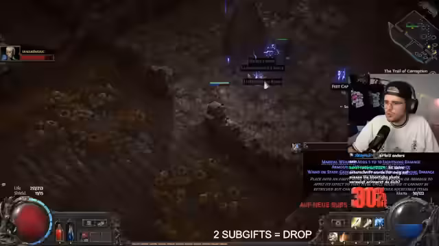 02:51:19Der Streamer ist tief in die Build-Analyse für Path of Exile (PoE) eingetaucht. Er überlegt, seinen Build auf einen Eis-Blitz-Hybrid umzustellen, um den Herold of Ice effektiver zu nutzen. Dabei wird er vom Chat herausgefordert, als Benni.grg mit falschen Informationen über das Spiel konfrontiert wird. Der Streamer sucht nach Items mit Eis-Schaden und prüft verschiedene Runen, um seinen Charakter zu optimieren, und stellt die Synergien zwischen den verschiedenen Fähigkeiten und Ausrüstungsstücken immer wieder infrage.