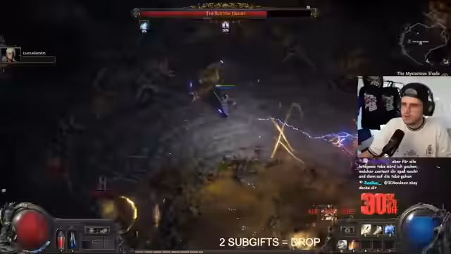 05:29:06Der Stream beginnt mit intensiven Kämpfen gegen einen anspruchsvollen Boss in Path of Exile, der die Spieler mehrmals bezwingt. Nach mehreren Niederlagen und knappen Überlebenssituationen gelingt es, den Boss zu besiegen, wobei der Fokus auf effizientem Managen der Heilressourcen und dem Erkennen der Angriffsmuster liegt. Die Überwindung des Bosses als Teamwork wird als wichtiger Erfolg gefeiert, gefolgt von der Ankündigung, bald in Akt 2 des Spiels überzugehen.
