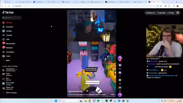00:11:09Der Fokus liegt auf dem Teilen und Kommentieren von gelikten TikToks. Diskutiert werden verschiedene Nischen-Trends wie Gloving, Sliding und Contact Juggling, wobei der Streamer seine Vorliebe für Tennis Racket Flipping und Burger Spinning ausdrückt. Ein spezieller Clip von einem Creator namens Lennox mit Cybertruck-Bezug wird gezeigt und begeistert kommentiert. Der Streamer erwähnt auch den gebrochenen 482-Tage-TikTok-Streak mit Feister.