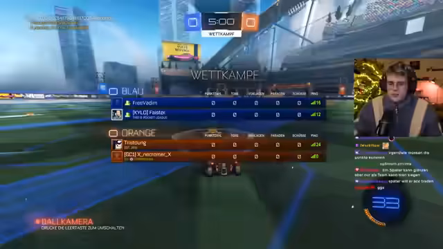 07:38:20Der Fokus liegt auf der aktuellen Partie, in der hohe Konzentration und Positionierung diskutiert werden. Der Spieler bemerkt, wie schnell Panik zu Fehlern führen kann, und reflektiert über Entscheidungen im Nachhinein. Es wird über Teamkoordination gesprochen, insbesondere wie Chasing-Verhalten das Demolieren erschwert. Die Gegner werden als koordiniert und defensiv stark beschrieben, was das Spiel herausfordernd macht. Ein Tor wird gefeiert, aber auch klar benannt, dass Fehler in der Ausführung bleiben.
