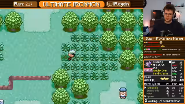 Ein neuer Versuch beim Ironmon-Run wurde begonnen, bei dem alle Elemente des Spiels zufällig generiert werden. Dies schafft eine hohe Herausforderung, da die Statverteilungen der Pokémon über das Ergebnis des Laufs entscheiden können. Der Fokus liegt darauf, trotz der schlechten Startbedingungen einen aussichtsreichen Run zu finden.