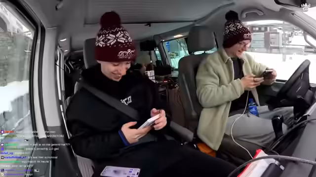05:33:24Die Gruppe diskutiert über die Notwendigkeit und den Nutzen der angebrachten Schneeketten, wobei die Meinungen auseinandergehen, ob sie tatsächlich helfen oder nur optisch etwas hermachen. Sie konsultieren die Anleitung und suchen online nach Informationen zur korrekten Montage. Es stellt sich heraus, dass ein Montagering hinter den Reifen platziert werden muss, was sie zuvor nicht beachtet hatten. Durch gegenseitige Hilfe und Anleitungen aus dem Chat gelingt es ihnen schließlich, die Schneeketten korrekt anzubringen. Während der Montage wird humorvoll über die Situation und die eigenen Fähigkeiten gewitzelt. Plötzlich wird enthüllt, dass der Hintergrund, den die Zuschauer seit Stunden sehen, ein Green Screen ist. Diese Enthüllung sorgt für Überraschung und Belustigung, da die Zuschauer die ganze Zeit über die Echtheit der Umgebung spekuliert hatten.