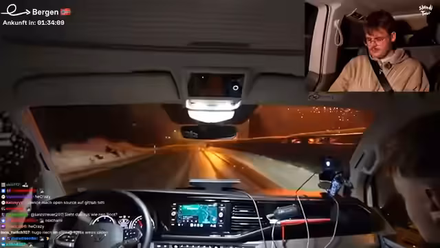 07:19:51Die Gruppe durchfährt einen beeindruckenden Kreisverkehr im Berg, der zuvor von einem Zuschauer per Video gezeigt wurde. Es wird über die Bauweise und die Kosten solcher Tunnelanlagen spekuliert. Die Gruppe erinnert sich daran, wann sie das letzte Mal getankt hat und was aus einem Flirt geworden ist. Es wird über die Technik gesprochen, die für den Stream verwendet wird, einschließlich Starlink und verschiedener Router. Die Kosten für die Technik werden als 'dumm teuer' bezeichnet. Es wird über die Stromversorgung gesprochen, die durch eine Power Station und den Zigarettenanzünder des Autos gewährleistet wird. Währenddessen kommen zufällige Kommentare von Zuschauern im Chat. Es wird überlegt, ob man Blitzer auf der Strecke beachten muss. Einer der Teilnehmer gesteht, dass er die Tour eigentlich hasst und nur für die Kamera gute Laune vorspielt, was aber sofort ins Gegenteil verkehrt wird. Es wird überlegt, was man am Setup verbessern könnte, wenn es kein Geldlimit gäbe.