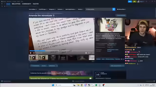00:04:44Der Stream wird nach einer kurzen Verzögerung aufgrund eines Einkaufs gestartet. Der Streamer erwähnt seinen Plan, einen Roblox-Off-Day einzulegen und gibt einen kurzen Einblick in seine Tagesroutine, die ein Laufband und Anime-Sessions umfasst. Es folgen zahlreiche Begrüßungen im Chat und eine Ankündigung des heutigen Spiels: Amanda The Adventure 3. Der Streamer kündigt eine Zusammenfassung der bisherigen Ereignisse an, da die Teile eine durchgehende Storyline haben. Er erwähnt zudem, dass er die Videos auf einem Uncut-Kanal hochladen möchte.