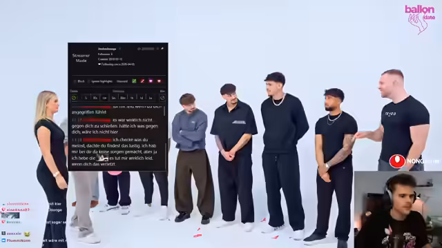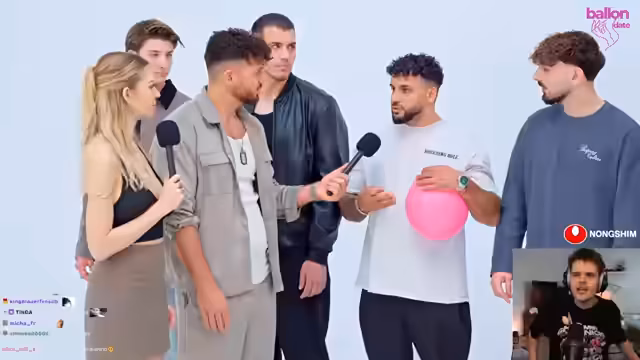 00:25:04Nach einer kurzen Unterbrechung stellt der Streamer den Inhalt des Streams vor und definiert das Prinzip von 'Pop the Balloon'. Männer stellen sich vor und beantworten Fragen, während Frauen über Äußerlichkeiten, Verhalten oder Macke entscheiden, ob sie bei einem Mann einen Ballon platzen lassen. Nach mehreren Vorstellungen von männlichen Teilnehmern mit Namen, Alter und Herkunft, sowie ihren Hobbys und Berufen, beginnt das eigentliche Format mit der ersten Frau, Ronja.