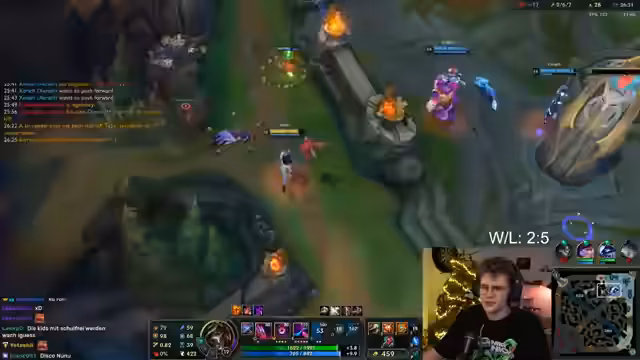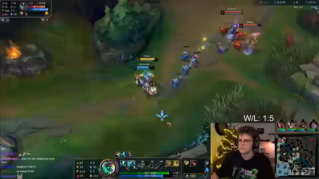 02:40:19Der Stream beginnt mit Frustration über ein verlorenes Teamfight, das durch einen abgelehnten Termin zu einem leichten Sieg hätte werden können. Der Gegner nutzt diese Situation, um um den Nexus zu pushen. Der Streamer kritisiert das menschliche Verhalten des Gegners, der auf Nachfragen nicht reagiert, und beklagt, dass er in diesem Spiel kein gutes Teamplay zeigen konnte. Die Analyse der eigenen Leistung lässt das Gefühl aufkommen, besser als das 1-3-Ergebnis gespielt zu haben, während der Trend des Supportspiels mit Karma kritisch betrachtet wird.