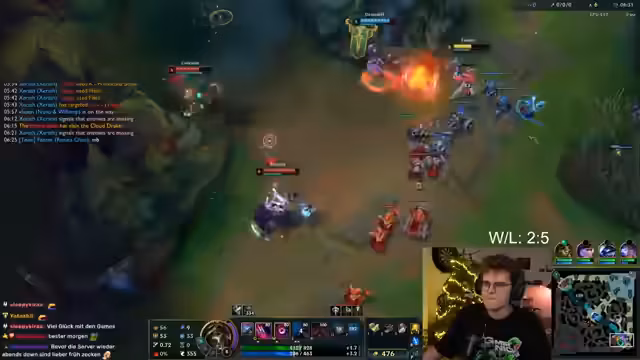 06:03:49In der Midlane wird mit Syndra gespielt, wobei der Fokus auf dem Farmen liegt. Ein Fokus liegt darauf, gegnerische Manöver wie den QE-Tab zu antizipieren. Der Streamer äußert Unzufriedenheit mit der eigenen Performance und vermutet, dass kaltende Hände die Spielqualität beeinträchtigen. Die Kombination aus Syndra und Lilia wird als stark angesehen, während die aktuelle Game-Phase hauptsächlich aus passivem Farmen besteht.