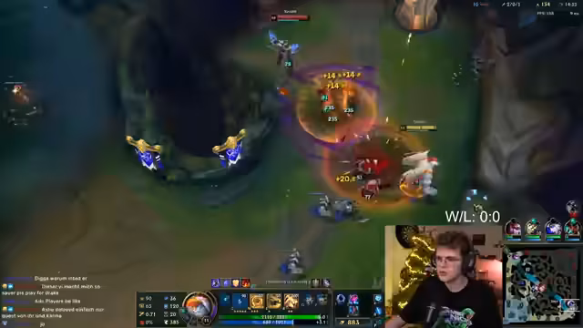 00:14:04Das erste Match der neuen Season beginnt mit Diana im Jungle. Der Streamer wählt aufgrund der害怕 vor dem gegnerischen Aphelios Galio als Mid-Laner und beschreibt seine Strategie als Tank- oder Damage-Variante. Sein Team besteht aus Karma, Xerath und einem weiteren Spieler, der sich schnell als Yi herausstellt. Er ist unsicher über die Wahl von Galio, da er mit der Match-up gegen Diana in der Mitte unzufrieden ist, und stellt die Stärke des gegnerischen Teams infrage. Es ist der erste Tag der neuen Season und der Streamer ist in Platin 3 platziert.