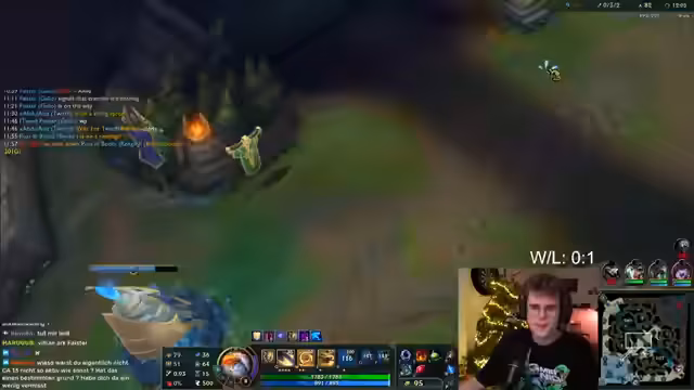 01:02:44Ungeachtet der vorherigen Niederlage startet der Streamer sofort ein neues Ranked-Spiel. In diesem Pick wählt er Thresh als Support und spielt einen Draven in der Bot-Lane. Sein Team mit Shen, Orn und Xerath hat eine schwierige Draft, wie der Streamer feststellt. Trotzdem ist er optimistisch und beschreibt den Anfang des Spiels als stabil. Draven holt sich einen Kill, was dem Team einen guten Start verleiht und dem Streamer zeigt, dass sie im Spiel bleiben können.