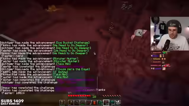 03:12:36Die Gruppe erkundet den Nether auf der Suche nach einer Festung, wobei sie sich anfangs unsicher ist, welchen Weg sie einschlagen soll. Es wird diskutiert, ob F3-Menü genutzt wird und wie man sich in den verschiedenen Biomen orientiert. Ein blauer Wald wird als wichtiges Biom identifiziert. Es gibt einige gefährliche Situationen, wie Stürze und Angriffe von Mobs, die aber gemeistert werden. Währenddessen werden persönliche Anekdoten ausgetauscht, wie ein gemeinsamer Berlin-Besuch, was zu einer entspannten und freundschaftlichen Atmosphäre beiträgt. Die Gruppe setzt sich das Ziel, Enderperlen zu farmen und eine Festung zu finden, um die Lohnrouten zu erhalten. Dabei wird über die beste Vorgehensweise diskutiert, wobei Enderperlen zunächst Priorität haben.