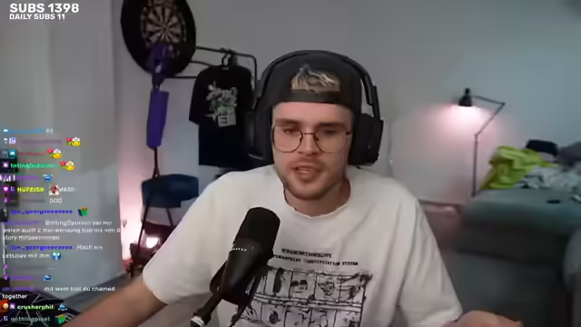 01:37:15Es werden Timeout-Entscheidungen im Chat aufgrund von unerwünschtem Verhalten diskutiert. Es wird der Wunsch geäußert, in die Zeit zurückzukehren, als Keycaps noch bekifft wurden. Kurzzeitig wird Coffee Spring Jazz zur Entspannung gespielt. Es folgt eine Diskussion über das Verhalten von Streamern, die bei Problemen einfach offline gehen, und die Angst davor. Es wird über frühere Wutausbrüche gesprochen, bei denen Keycaps herausgerissen und gegen Wände geschlagen wurde. Dima soll in Kürze eintreffen, und die Vorfreude auf das Spiel steigt. Es wird überlegt, Keycaps von einer anderen Tastatur zu entfernen, und die Wichtigkeit des Teamspiels betont. Dima ist noch nicht live, soll aber bald in den Call kommen. Phoebe hat eine Tastatur, deren Beschriftung unbekannt ist, was zu humorvollen Kommentaren führt.