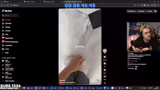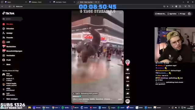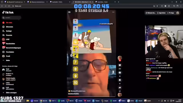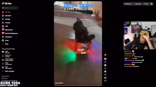 02:02:31Es werden verschiedene Memes und Internetphänomene betrachtet, darunter ein Meme, das nicht verstanden wird, und Top-5-Clips von Carsten Stahl. Ein unerwarteter Vorfall mit einem Stück Styropor vom Sofa sorgt kurzzeitig für Aufregung. Im Anschluss werden TikTok-Videos von Katzen auf Spielzeugautos entdeckt und diskutiert, wobei die Meinungen über deren Unterhaltungswert auseinandergehen. Die Videos werden als potenziell "too much" eingestuft. Es folgt eine kurze Auseinandersetzung mit Zuschauern bezüglich einer vermeintlichen Beleidigung und der Aufforderung, sich umzusetzen, wenn etwas nicht gefällt. Der Fokus verlagert sich auf bevorstehende Ereignisse und absurde Ideen, wie das Klingeln bei Fremden, um nach einem Schlafplatz zu fragen. Ein inszenierter Anruf bei Fremden, bei dem um eine Schlafmöglichkeit gebeten wird, wird vorgetragen, inklusive des Angebots einer Matratze in der Garage.