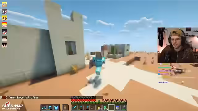 03:10:45Nach der emotionalen Konfliktbewältigung lenkt der Streamer das Thema um und plant einen „Boot-Prank“. Er sammelt Holz und organisiert Mitspieler für den Streich. Ein Mitspieler, Heiko, äußert seine Vorliebe für bestimmte Minecraft-Farmen, insbesondere die End-of-Light-Farm, was zu technischen Überlegungen führt. Die Dynamik bleibt dabei geprägt von einem wiederkehrenden Motto: „Der Widerstand gegen den Koffer“.